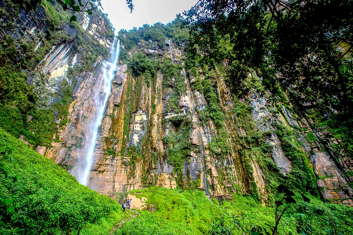 Imponente caída de agua de 771 metros dividida en dos impresionantes saltos, la Catarata Gocta, también llamada cariñosamente "La Chorrera", se alza como el tercer salto de agua más alto del Perú y un destino imprescindible en la provincia de Bongará en la región Amazonas.