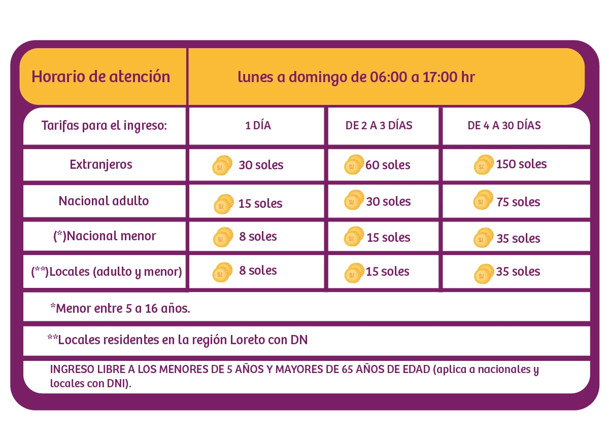 Cabe mencionar que las tarifas solo corresponden al ingreso, más no a los servicios correspondientes a los ofrecidos por la empresa autorizada.