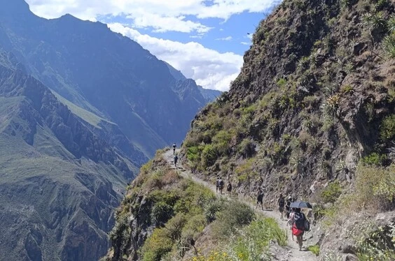 - Disfrutamos de un hermoso paisaje del cañón con vistas de cóndores y variedad de flora y fauna local Llegamos al final de nuestra caminata, en vehículo nos dirigimos al Pueblo de Yanque (un pequeño tasting de fruta y bebida local en ruta)